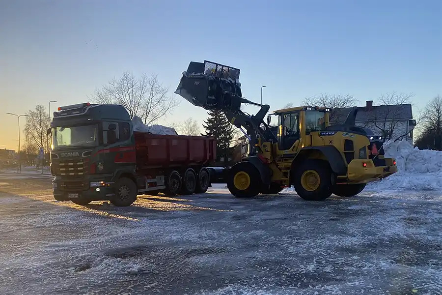 Talvella huolehdimme lumenajosta ja pihojen sekä teiden kunnossapidosta.